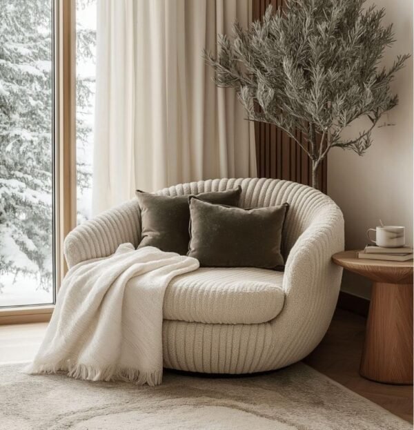 The Beige Knitted Modern Swivel Chair brings together comfort and contemporary style in one beautifully crafted piece. Featuring a soft, knitted fabric in a warm beige tone, this chair offers a cozy yet sophisticated seating experience. The swivel functionality adds flexibility, allowing for easy movement and versatility in any space. Perfect for your living room, home office, or reading nook, it combines modern aesthetics with a comfortable, inviting design.