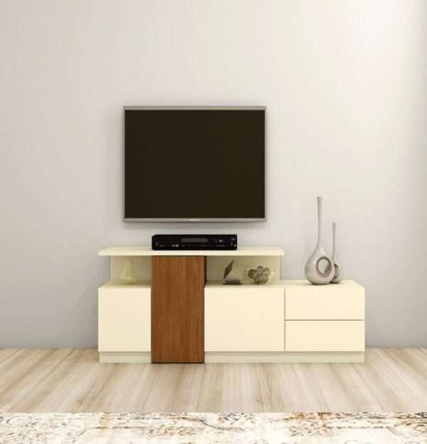 Featuring a minimalist floating silhouette, this TV stand enhances contemporary, Scandinavian, and modern interiors. The beige and wood combination creates warmth and balance, complementing neutral palettes, sleek décor, and clean lines. Its streamlined design keeps the living area uncluttered while adding subtle visual interest.