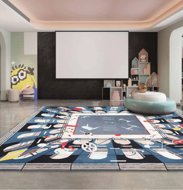 This carpet features charming cartoon motifs designed to delight both children and the young at heart. The vibrant colors and playful patterns pair well with bright furniture, themed décor, and casual interiors. Ideal for kids’ bedrooms, nurseries, or play areas, it creates an energetic, cheerful, and engaging atmosphere.