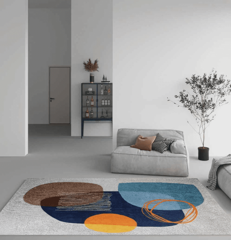 Colorful Abstract Woven Carpet injects energy and creativity into any space. Its vibrant, irregular shapes and rich mix of colors create a playful yet sophisticated focal point. Perfect for living rooms, studios, or play areas, it adds personality and warmth while maintaining a soft, comfortable surface underfoot.