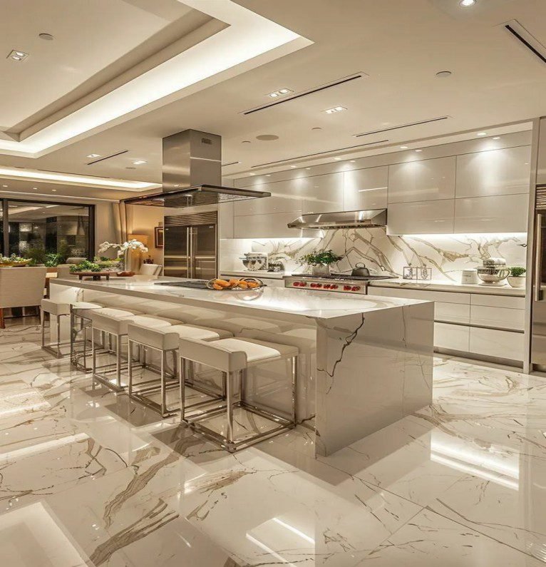 These marble countertops are specifically designed for high-traffic food preparation areas. They are ideal for residential kitchen islands, commercial bar counters, and similar applications. Their soft, mineral-toned base and customizable finishes pair perfectly with natural wood cabinets, brushed metal hardware, and a variety of interior lighting schemes. Custom edge profiles and precise construction thickness ensure that this high-density material is durable and easy to maintain.