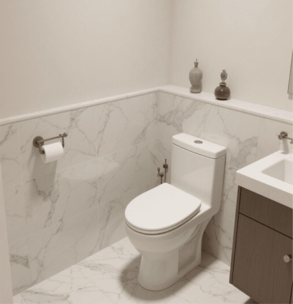 Overall, this toilet combines comfort with sophisticated design, enhancing the bathroom’s atmosphere. Its durable ceramic construction ensures reliable long-term use, while the marble-inspired finish adds elegance and refinement. In addition, it integrates seamlessly into a variety of interior styles, making it an ideal choice for homeowners who value both functionality and a luxurious, timeless aesthetic in their bathroom.
