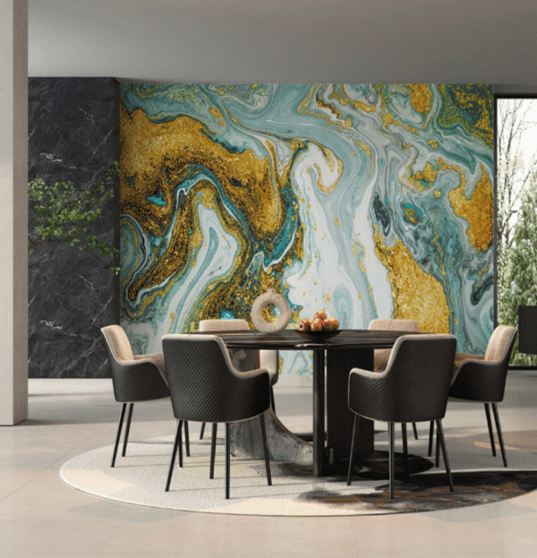 The panels combine contemporary style with a touch of elegance. Teal introduces a cool and serene mood that feels modern and refined. Gold adds warmth and luxury, giving the design a premium appearance. The contrast between the two colors creates a balanced and eye-catching effect. This style pairs well with minimalist furniture, metallic décor, and marble-inspired surfaces. It suits spaces that aim for a modern yet expressive aesthetic and works well in both home and commercial interiors.