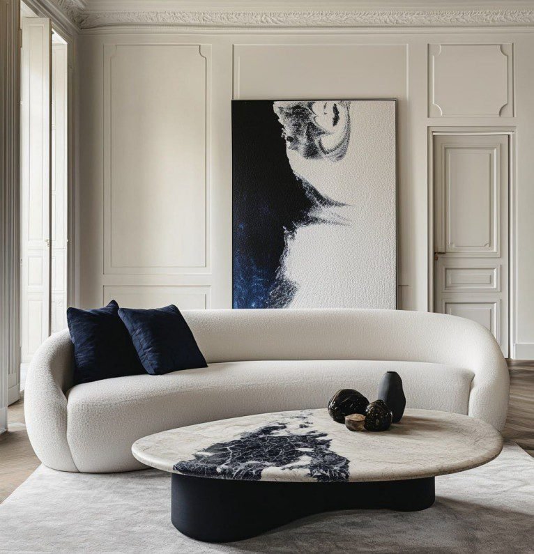 This sofa features a smooth, curved silhouette that enhances the flow and openness of any room. The soft white fabric complements a variety of decor styles, creating a serene and inviting atmosphere. The plush cushions ensure maximum comfort, perfect for lounging or relaxing. The clean lines and minimalist design add sophistication, while the solid construction guarantees long-lasting support.