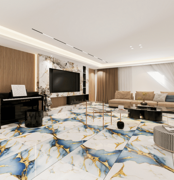 The Glazed Porcelain Tile offers both visual sophistication and durable performance. Its marble-inspired design creates an upscale, polished look, while the glazed porcelain ensures easy maintenance and long-lasting durability. Ideal for residential or boutique commercial settings, these tiles transform interiors into elegant, stylish, and luxurious environments that feel refined and contemporary.