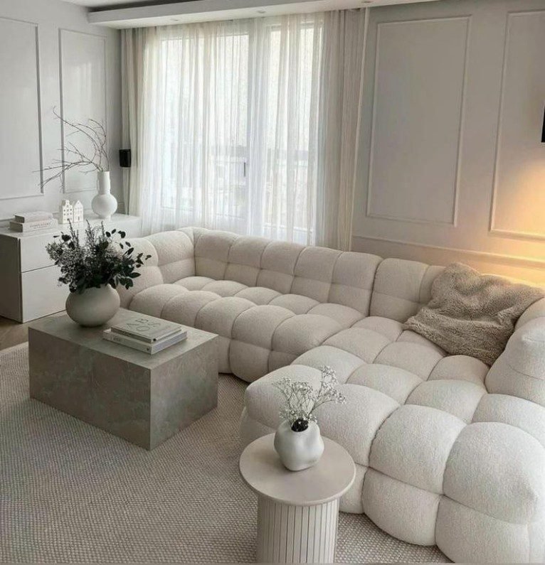 This sofa features a modern, cloud-inspired design with plush cushions that create a cozy and inviting atmosphere. The clean lines and soft white fabric enhance any room’s aesthetic, from minimalist to contemporary. The sturdy construction ensures durability, while the luxurious feel adds a sense of elegance. Perfect for both relaxation and style, it complements a wide range of home decor styles.