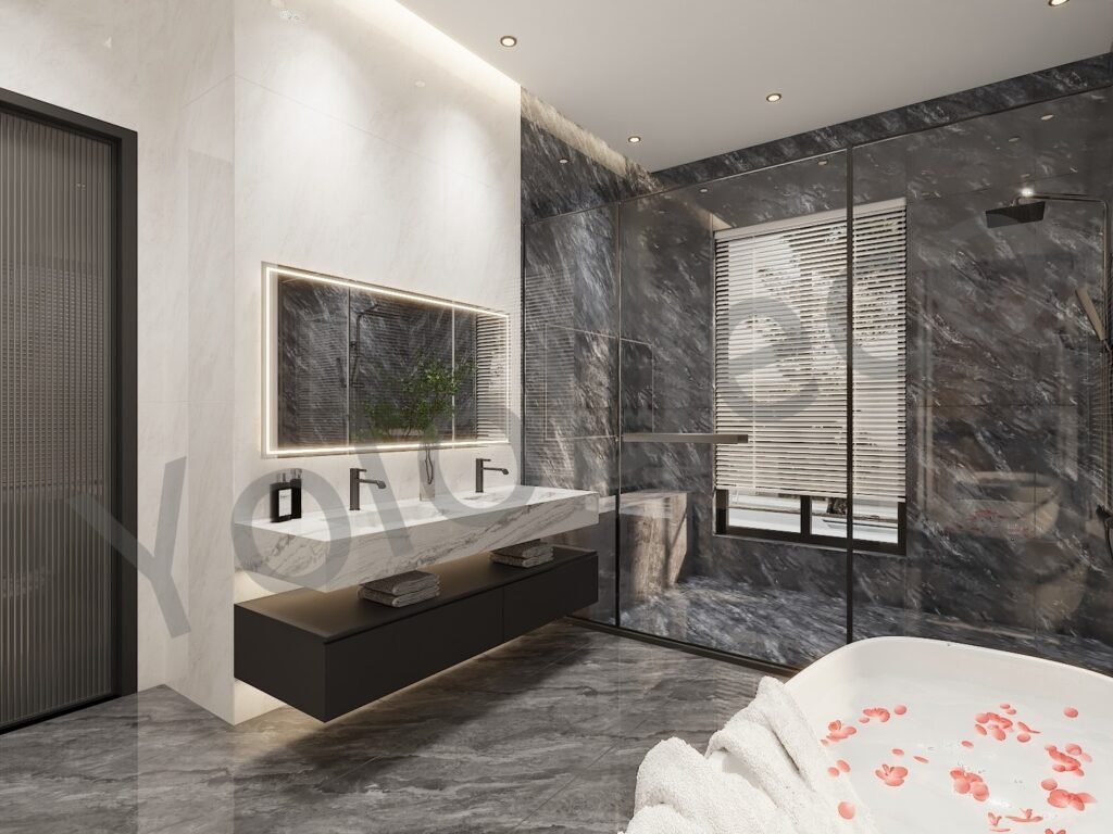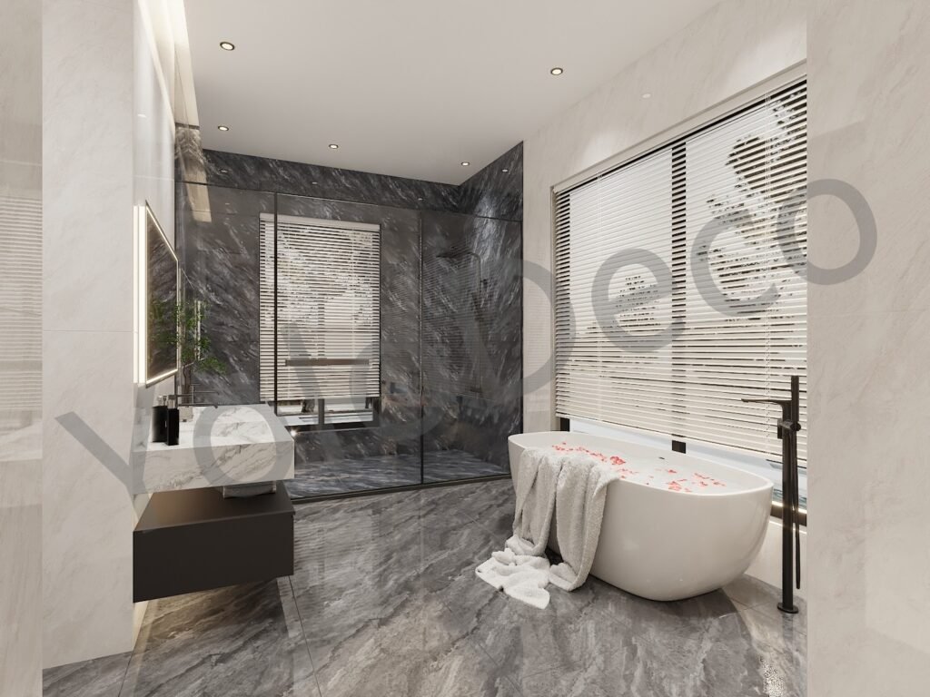 This Tanzanian villa showcases YoloDeco’s comprehensive design and construction capabilities. We not only design spaces but also meticulously craft every detail envisioned by our clients. By blending the opulent texture of premium marble with the warm warmth of natural wood, complemented by soft fabrics, we create residences that harmoniously blend luxury and comfort. This project underscores our commitment to providing a one-stop solution—seamlessly integrating the entire process from initial design sketches and 3D renderings to the final production of high-quality furniture and building materials.